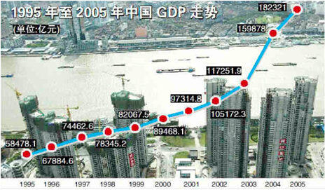 從改革開發(fā)至今的30年間,國(guó)內(nèi)生產(chǎn)總值增加了77倍,人均增長(zhǎng)32.4倍,經(jīng)濟(jì)年均增長(zhǎng)9.8%,世界同期為3%,高于日本、韓國(guó)經(jīng)濟(jì)起飛階段年均增長(zhǎng)率,經(jīng)濟(jì)總量呈“加速度”擴(kuò)張。