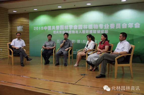 “園林植物資源及綠化工程”分論壇中,北京世界園藝博覽會延慶籌備領(lǐng)導(dǎo)小組辦公室黨組書記兼常務(wù)副主任吳世江、北京胖龍麗景科技有限公司銷售部副總經(jīng)理梁杰、廣州市林業(yè)和園林科學(xué)研究院副部長葉廣榮、北京市頤和園管理處高級工程師趙曉燕、北京林業(yè)大學(xué)園林學(xué)院教授董麗參與發(fā)言與討論環(huán)節(jié)。討論環(huán)節(jié)由北京植物園園長趙世偉主持。