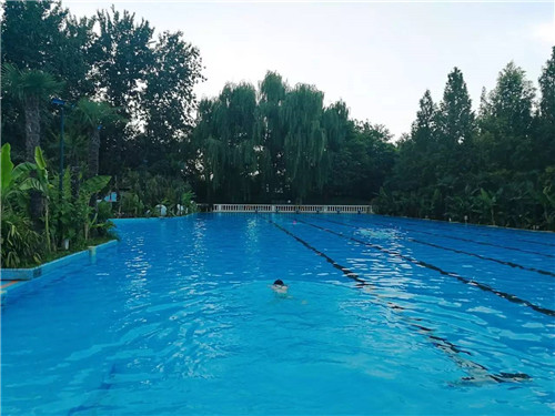 創(chuàng)意不止于此,50米標準泳池墊高2米建在叢林中,暢游其中望向周圍樹木,只見其冠,不見其干,如置身“空中天池”綠樹環(huán)繞,使你在戲水間,回歸自然本真。